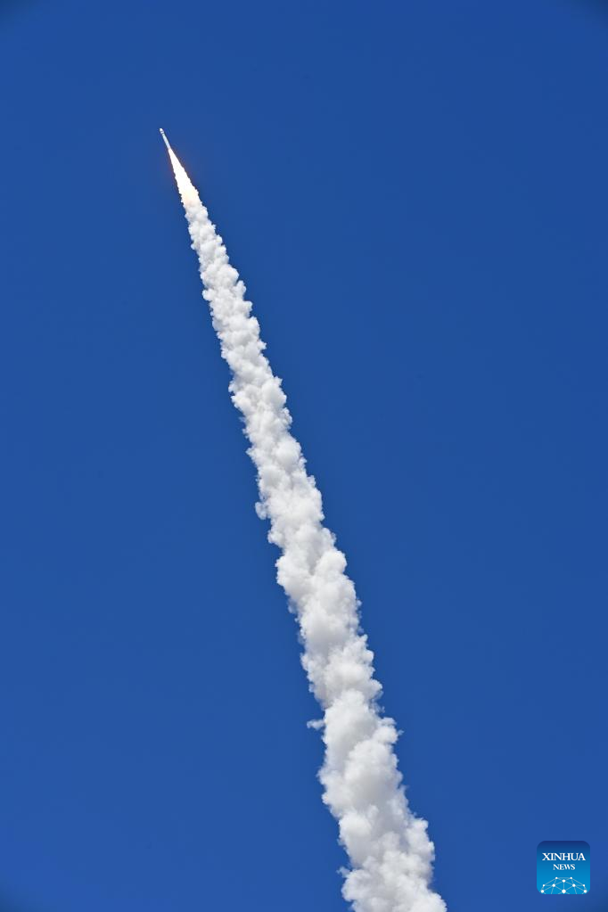 A Lijian-1 carrier rocket carrying six new satellites blasts off from the Jiuquan Satellite Launch Center in northwest China, July 27, 2022. The satellites, including a new space technology test satellite and a test satellite for probing atmospheric density, were launched by the Lijian-1 carrier rocket at 12:12 p.m. Beijing Time and entered the orbit successfully. (Photo by Wang Jiangbo/Xinhua)