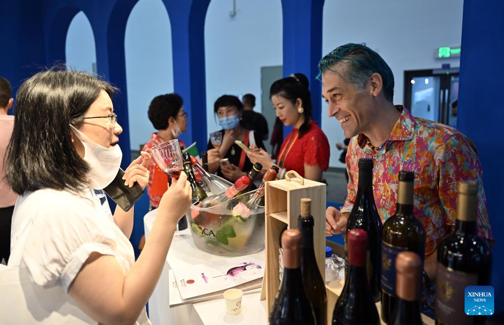 A visitor tastes Italian wine at the second China International Consumer Products Expo (CICPE) in Haikou, south China's Hainan Province, July 29, 2022. (Xinhua/Guo Cheng)