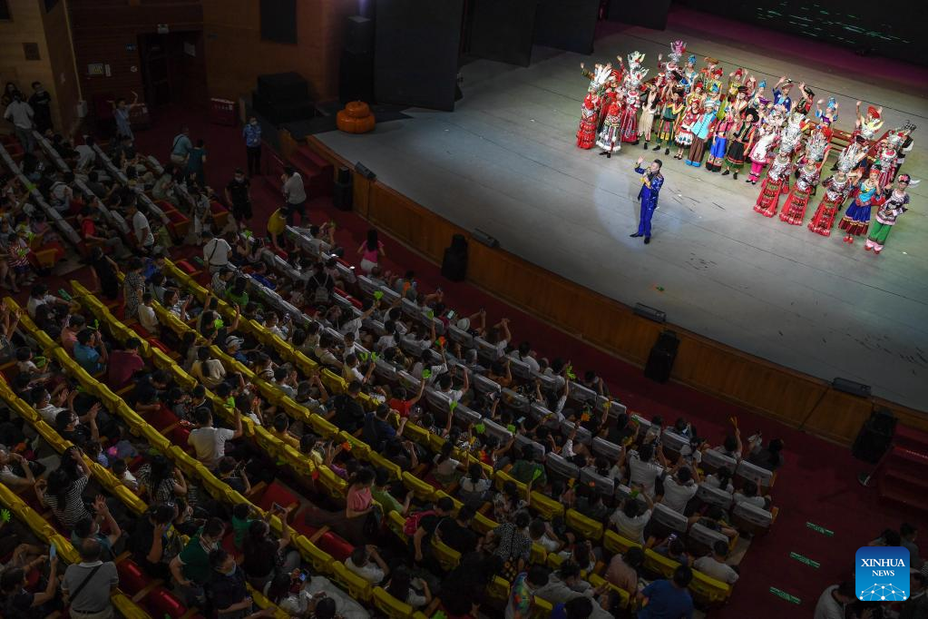 Actors perform in the show "Colorful Guizhou Style" at Guiyang Grand Theatre in Guiyang, southwest China's Guizhou Province, July 30, 2022. Performance of the song and dance show "Colorful Guizhou Style" has recently resumed at Guiyang Grand Theatre.