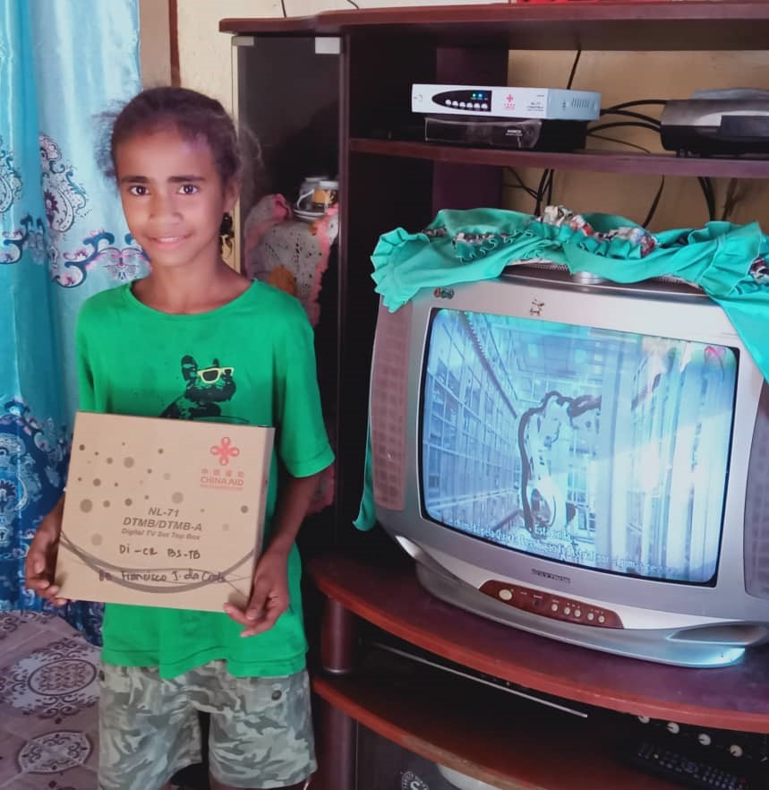 A set-top box is just installed for a family in Timor-Leste. (Photo courtesy of the Chinese Embassy in Timor-Leste)