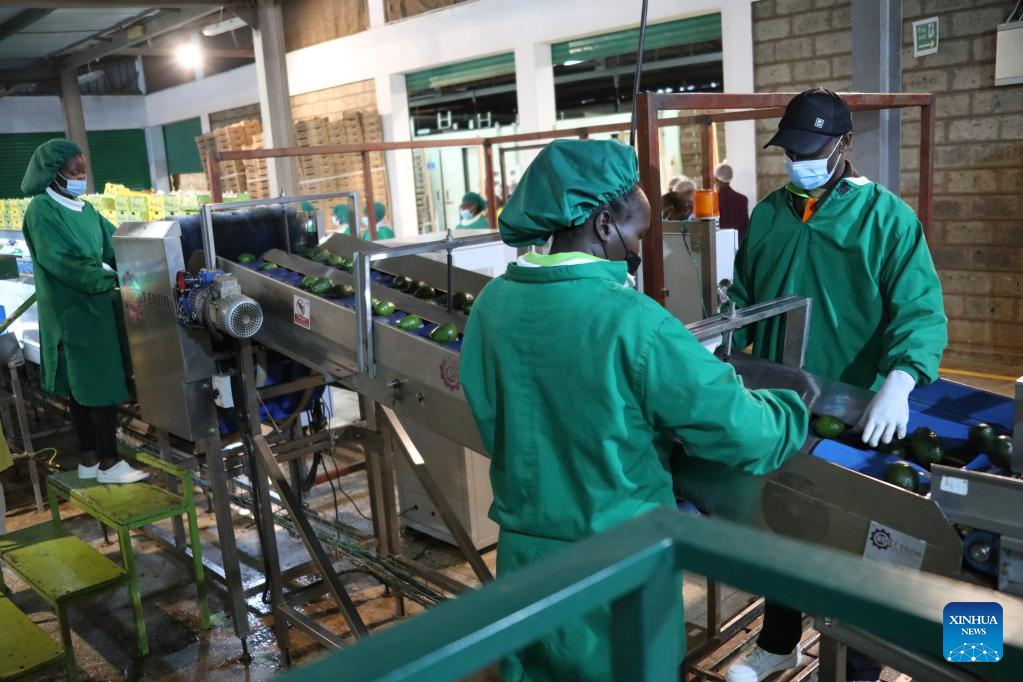 Staff members work at Sunripe factory in Limuru Town, Kiambu County, Kenya, on Aug. 2, 2022. The first batch of fresh avocados grown in Kenya and destined for the Chinese market was flagged off Tuesday at a ceremony attended by senior government officials, diplomats, and industry executives. Kenya became the first African country to export fresh avocados to China in a move set to further boost the economic ties between the two countries. (Xinhua/Dong Jianghui)