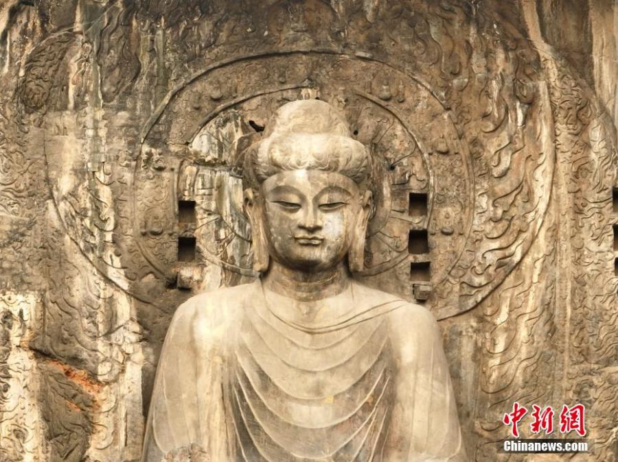Restored giant Buddha statue of Lushena unveiled in Longmen Grottoes