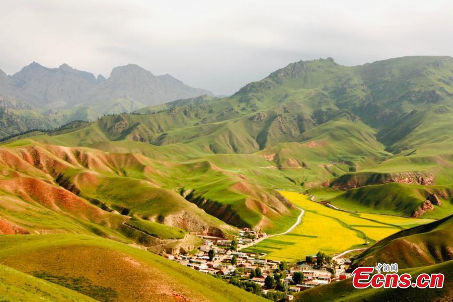 Magnificent summer scenery of Zhuo'er Mountain, which features Danxia landform, in Qilian county of Haibei Tibetan autonomous prefecture, northwest China's Qinghai Province. (Photo: China News Service/Zhao Haimei)