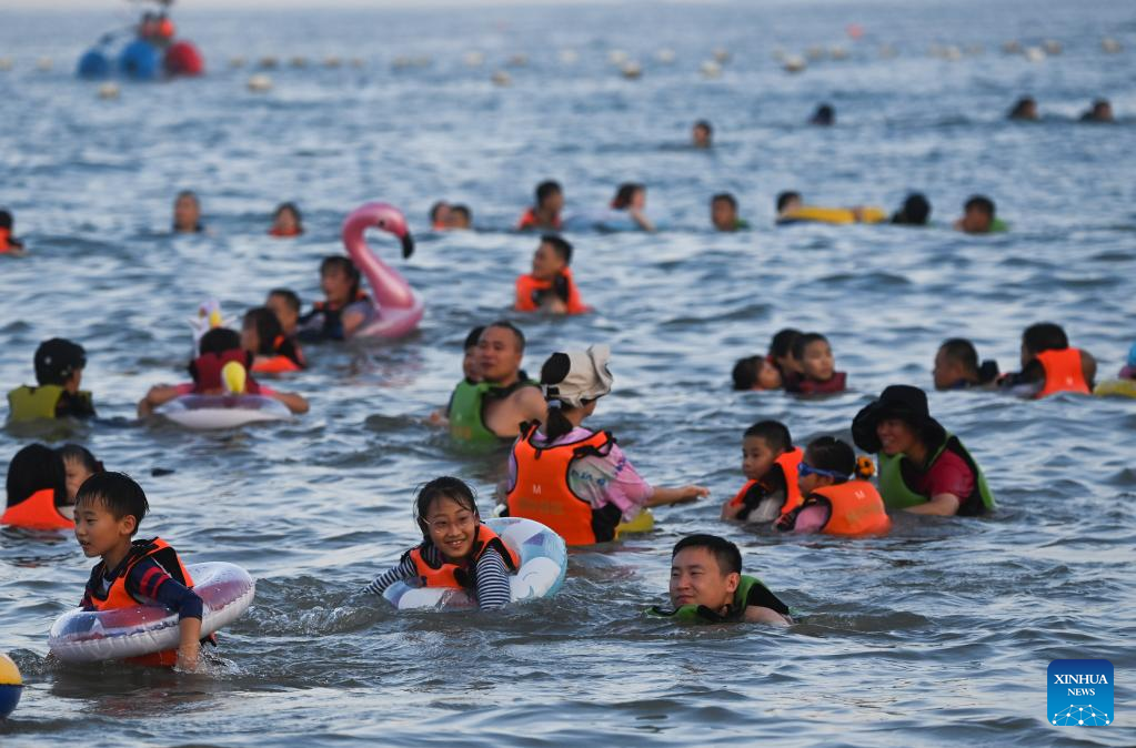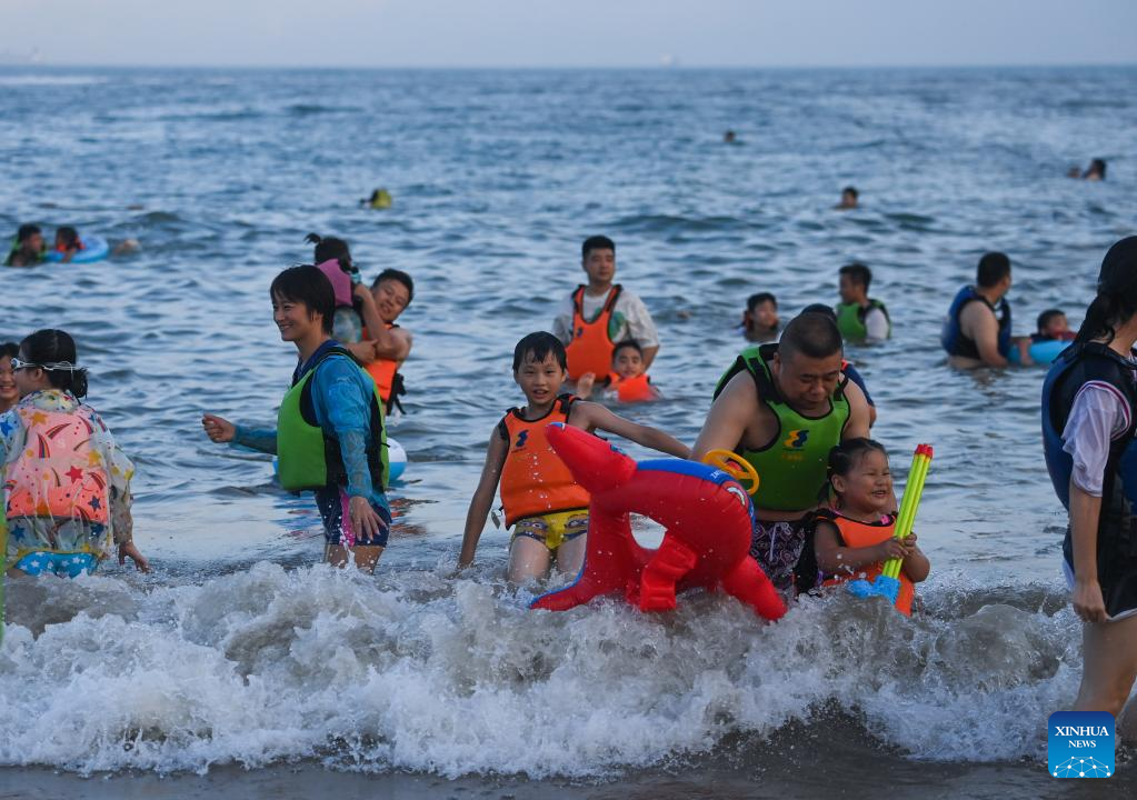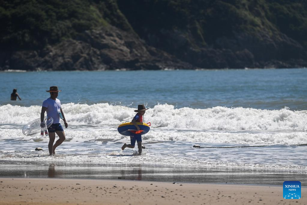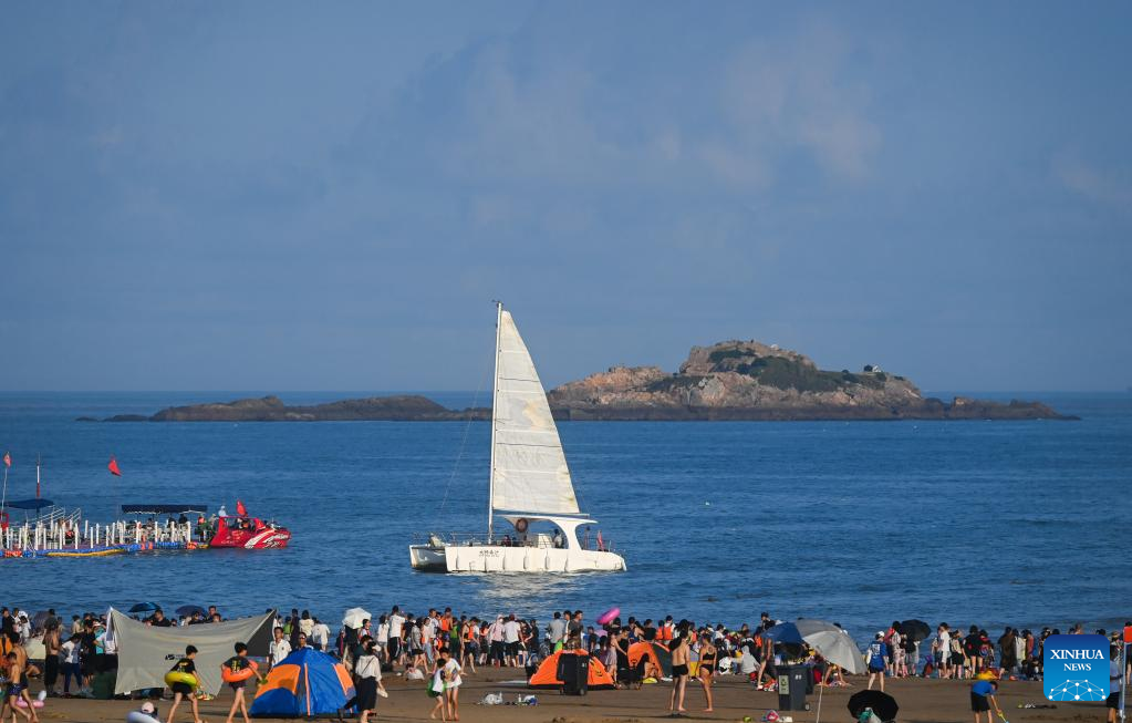 Tourists enjoy seaside time in Zhujiajian scenic spot in Zhoushan, east China's Zhejiang Province, Aug. 2, 2022. Zhujiajian scenic spot has provided various seaside entertainments for tourists to boost tourism during the summer vacation. (Xinhua/Xu Yu)