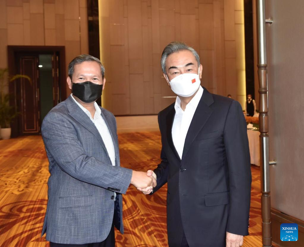 PHNOM PENH, Aug. 3 (Xinhua) -- Chinese State Councilor and Foreign Minister Wang Yi met with Cambodian People's Party's Permanent Committee member and Prime Minister candidate Hun Manet here on Wednesday.