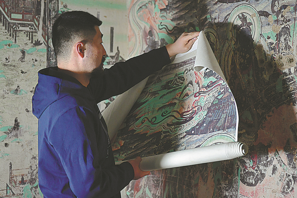 Murals are copied at the Mogao Grottoes in Dunhuang, Gansu province. CHEN BIN/DU ZHEYU/XINHUA