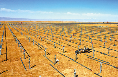 Photo shows the construction site for a photovoltaic power generation park. During the early days after the construction of the park was kicked off, the site was almost entirely just a stretch of wasteland. (Photo/People’s Daily)