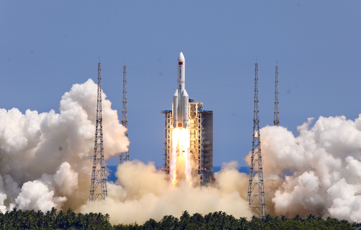A Long March 5B rocket sends China's Wentian space lab into space on July 24, 2022. [Photo/Xinhua]