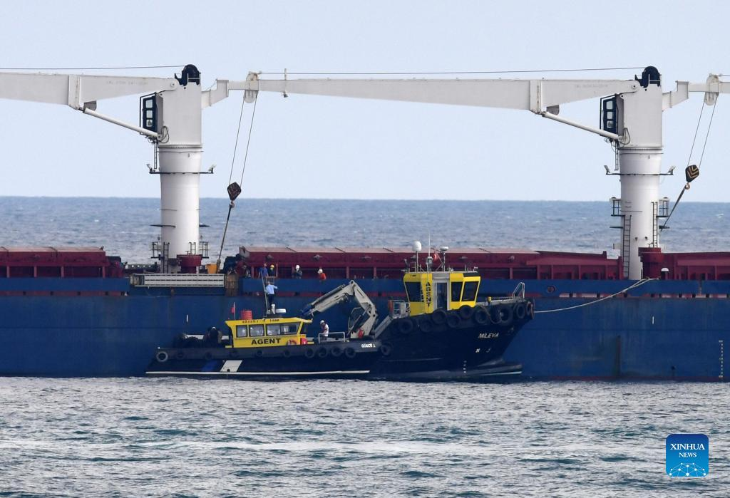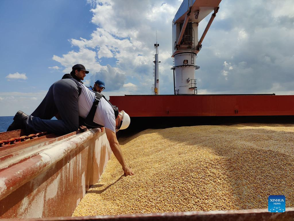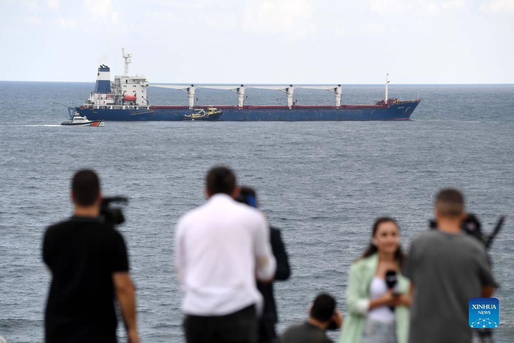 ISTANBUL, Aug. 3 (Xinhua) -- The first grain-laden ship leaving Ukraine passed through Istanbul's Bosphorus Strait on Wednesday and continued to its destination after the inspection team gave the green light.