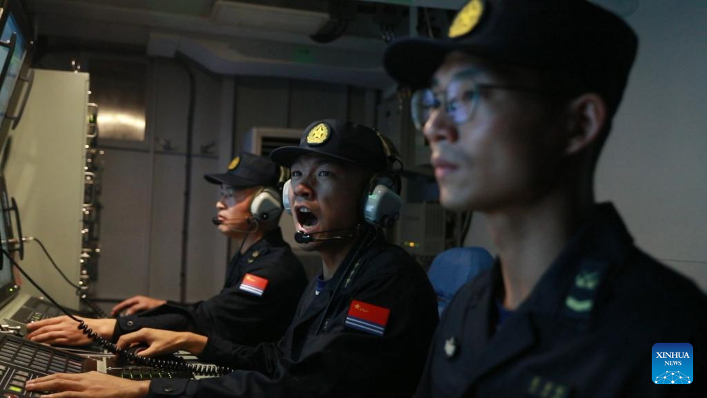 Soldiers of the navy of the Eastern Theater Command of the Chinese People's Liberation Army (PLA) conduct operations during joint combat exercises and training around the Taiwan Island, Aug. 6, 2022. The Command continued its joint combat exercises and training as scheduled on Saturday in the waters and airspace around the Taiwan Island. The Command tested its capabilities for striking targets on land and sea with the support of an integrated military system. (Photo by Xu Chen/Xinhua)