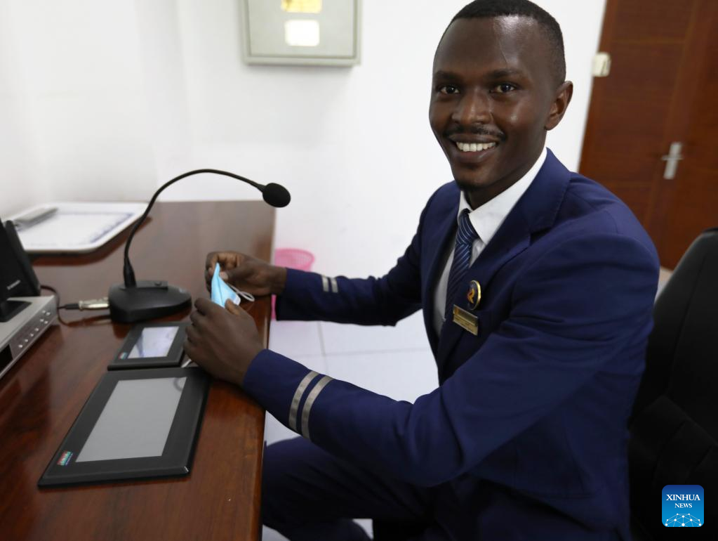 Announcer David Mwangi Ndungu works at Mombasa Terminus Station in Mombasa, Kenya, July 27, 2022. Launched on May 31, 2017, the 480 km Mombasa-Nairobi Standard Gauge Railway (SGR), financed mainly by China and constructed by China Road and Bridge Corporation (CRBC), has fostered job creation for local people.
