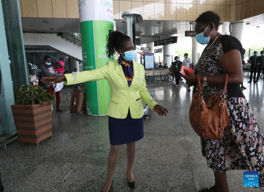 Passenger attendant Monicah Chepkemboi guides a passenger to take the elevator at Mombasa Terminus Station in Mombasa, Kenya, July 27, 2022. Launched on May 31, 2017, the 480 km Mombasa-Nairobi Standard Gauge Railway (SGR), financed mainly by China and constructed by China Road and Bridge Corporation (CRBC), has fostered job creation for local people.