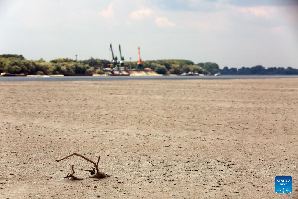 Dry bed of Danube River is seen in Teleorman County, Romania, on Aug. 7, 2022. Romania is facing severe drought this summer. (Photo by Gabriel Petrescu/Xinhua)