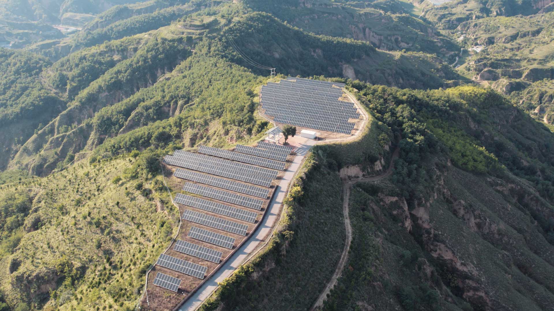 Aerial photo taken on July 20, 2022, shows photovoltaic facilities at Liangjiahe Village, Yanchuan County in Yan'an City, northwest China's Shaanxi Province. (People’s Daily Online/Liu Ning)