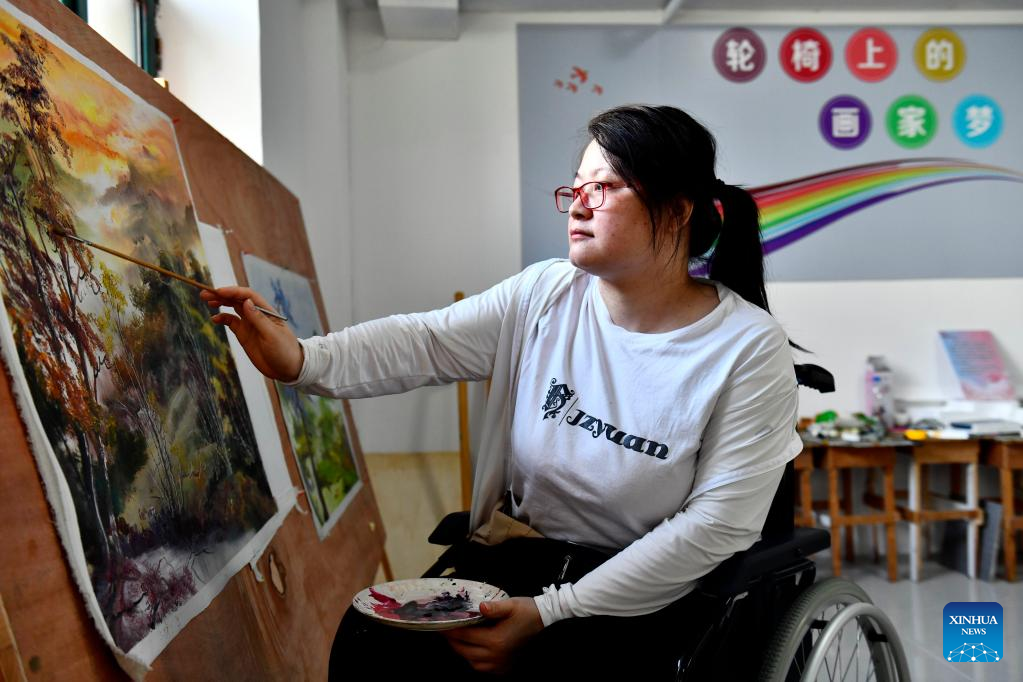Public welfare program in China's Weihai helps people with disability learn oil painting skills