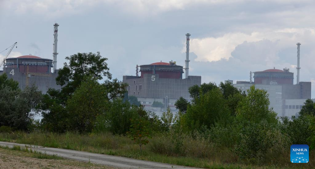 Photo taken on Aug. 4, 2022 shows the Zaporizhzhia nuclear power plant (NPP) in southern Ukraine. Zaporizhzhia is one of the largest atomic power complexes in Europe and generates a quarter of Ukraine's total electricity. It has been under the control of Russian forces since March and has been the scene of military strikes in recent days. (Photo by Victor/Xinhua)