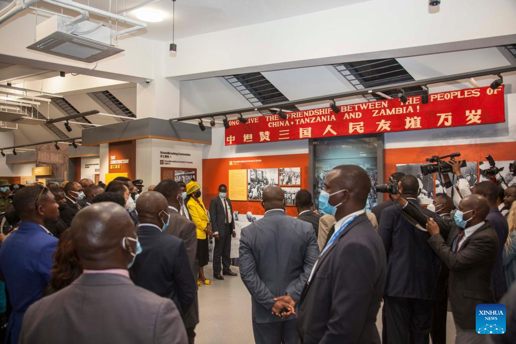 People visit the museum of the TAZARA Memorial Park in Chongwe, Lusaka Province, Zambia, on Aug. 10, 2022. Zambia on Wednesday commissioned a memorial park built in honor of Chinese nationals who died during the construction of the Tanzania Zambia Railway Authority (TAZARA) railway line in the 1970s. (Xinhua/Martin Mbangweta)