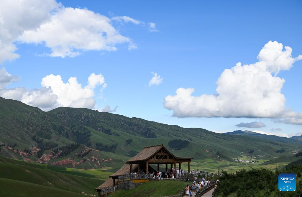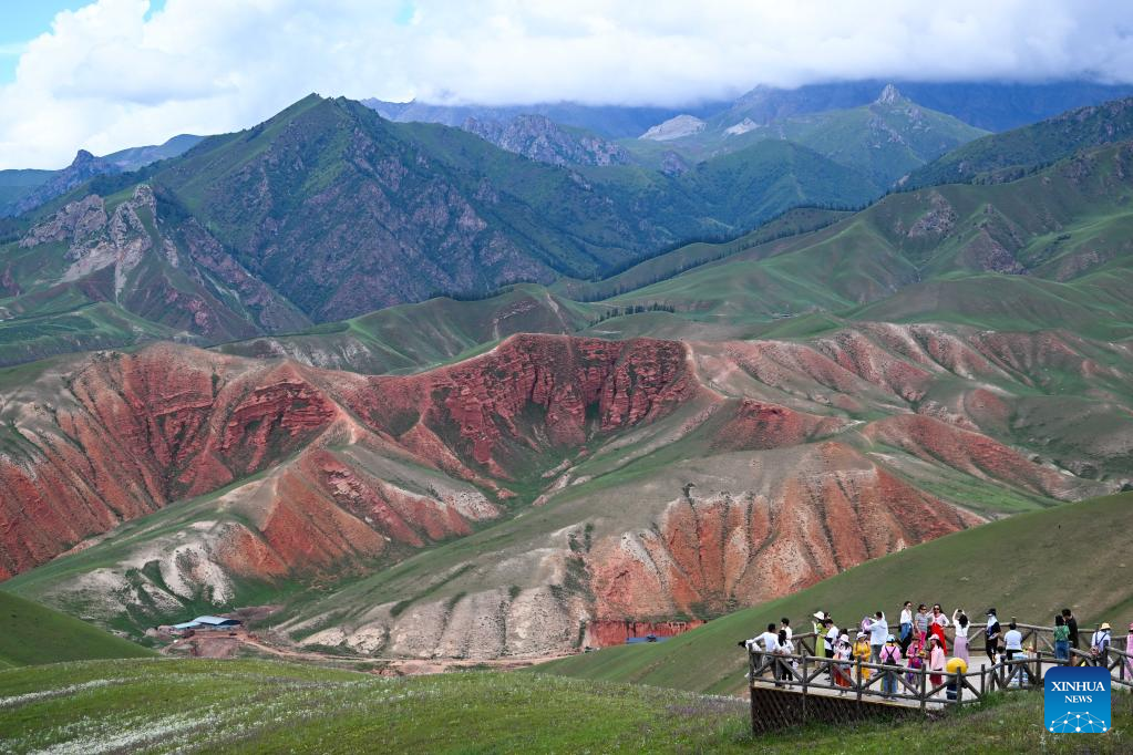 Tourists visit Zhuo'er Mountain scenic area in Qilian County of Haibei Tibetan Autonomous Prefecture, northwest China's Qinghai Province, Aug. 10, 2022. (Xinhua/Geng Huihuang)