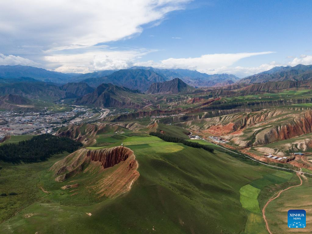 Aerial photo taken on Aug. 10, 2022 shows a scenery of Qilian County in Haibei Tibetan Autonomous Prefecture, northwest China's Qinghai Province. (Xinhua/Zhang Long)