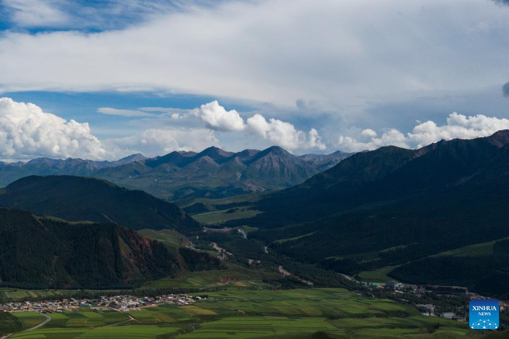 Photo taken on Aug. 10, 2022 shows a scenery of Qilian County in Haibei Tibetan Autonomous Prefecture, northwest China's Qinghai Province. (Xinhua/Zhang Long)