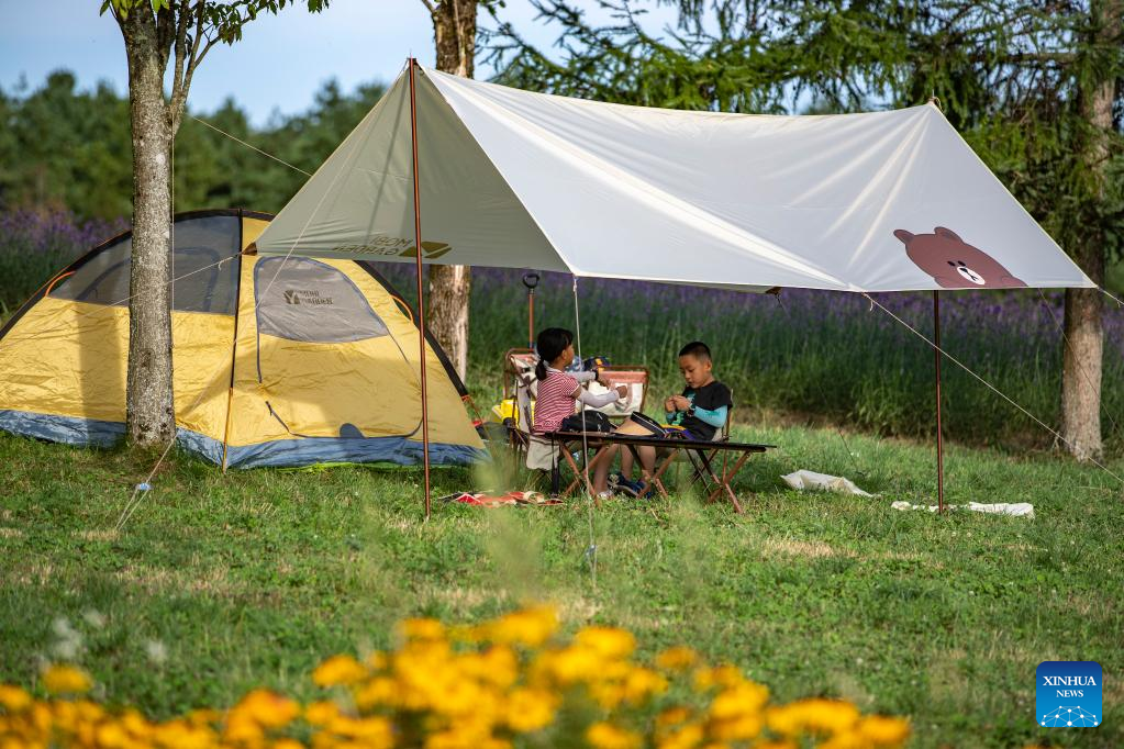 Tourists go camping in Hongchiba scenic area in Wuxi County of southwest China's Chongqing, Aug. 10, 2022.