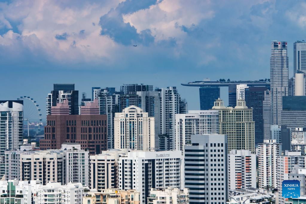 Photo taken on Aug. 10, 2022 shows the city skyline in Singapore. According to Enterprise Singapore, the city-state's total merchandise trade grew by 28.1 percent year on year in the second quarter of 2022, to 357.8 billion Singapore dollars (260.8 billion U.S. dollars), compared to the 20.8-percent growth in the first quarter. (Xinhua/Then Chih Wey)