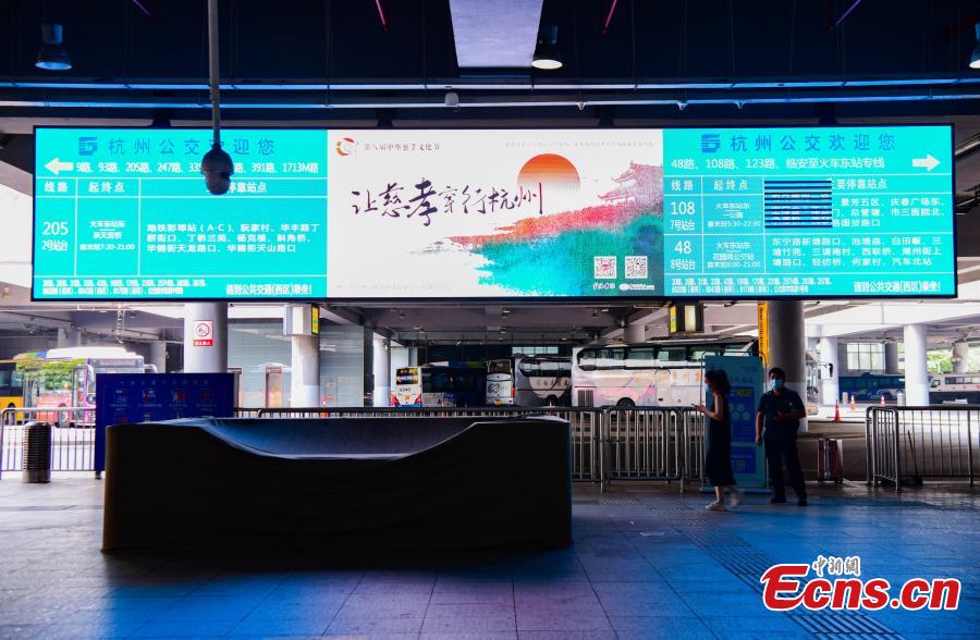 A poster spreading traditional Chinese filial piety hangs at a bus station in Hangzhou, east China's Zhejiang Province, Aug. 10, 2022. (Photo provided to China News Service)