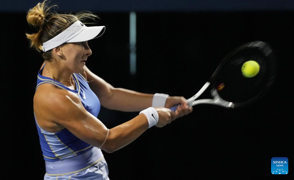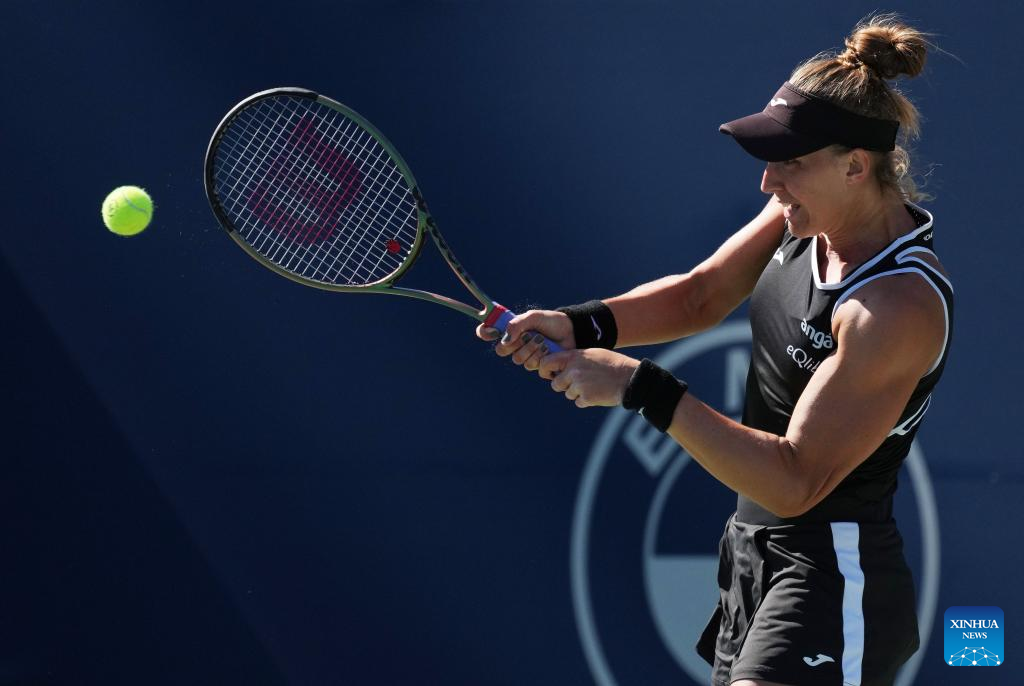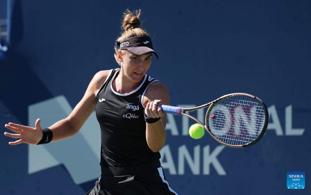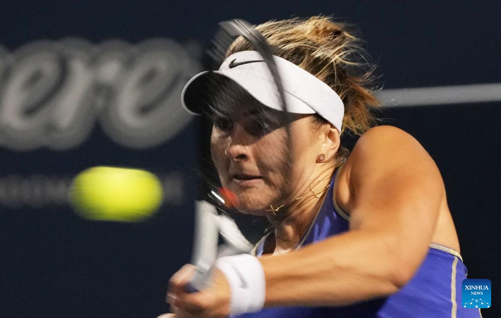 Bianca Andreescu of Canada returns the ball during the third round of women's singles match between Zheng Qinwen of China and Bianca Andreescu of Canada at the 2022 National Bank Open tennis tournament in Toronto, Canada, on Aug. 11, 2022. (Photo by Zou Zheng/Xinhua)