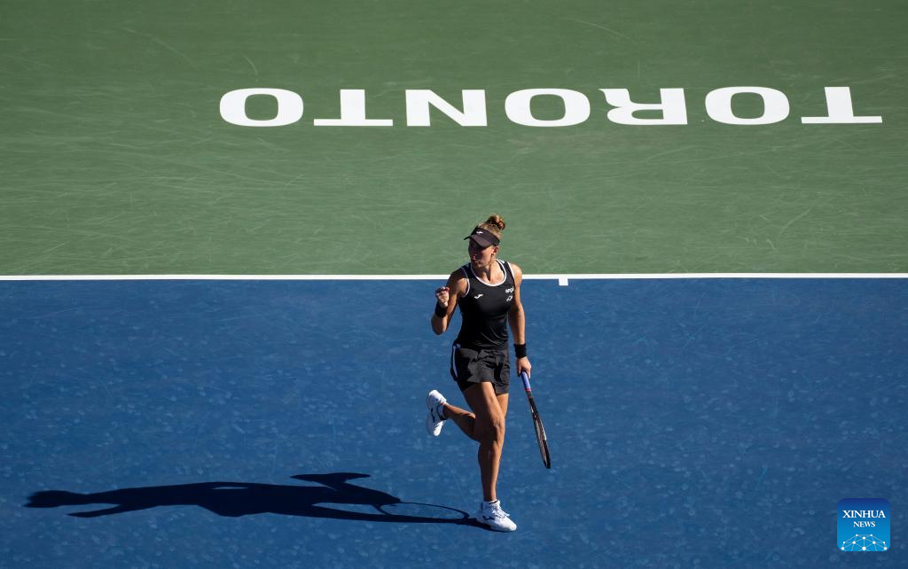 Beatriz Haddad Maia of Brazil celebrates scoring during the third round of women's singles match between Iga Swiatek of Poland and Beatriz Haddad Maia of Brazil at the 2022 National Bank Open tennis tournament in Toronto, Canada, on Aug. 11, 2022. (Photo by Zou Zheng/Xinhua)