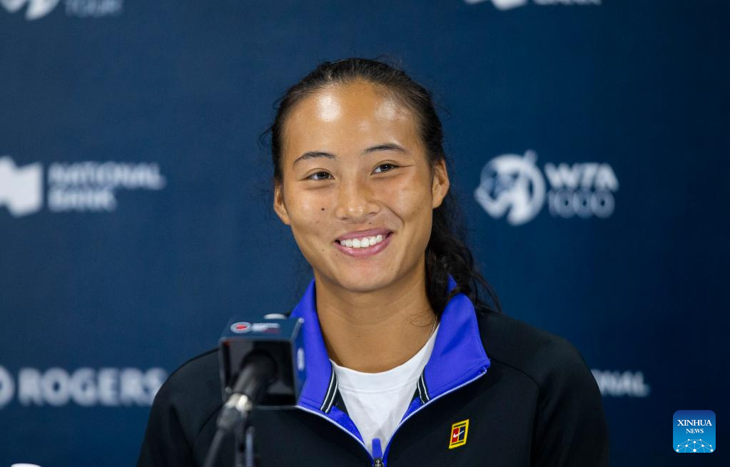 Zheng Qinwen of China attends a press conference after the third round of women's singles match between Zheng Qinwen of China and Bianca Andreescu of Canada at the 2022 National Bank Open tennis tournament in Toronto, Canada, on Aug. 11, 2022. (Photo by Zou Zheng/Xinhua)