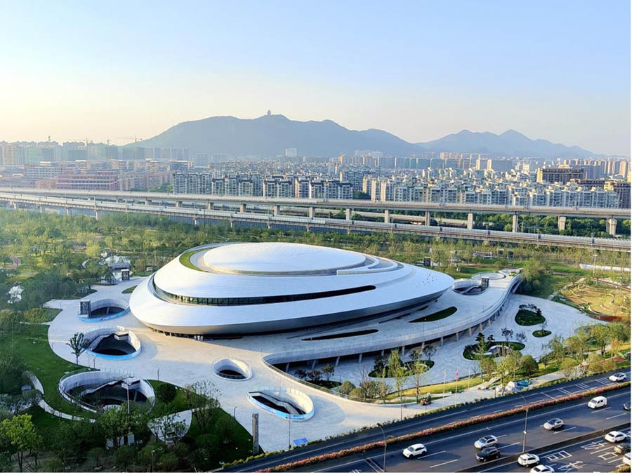 Aerial photo taken on June 16, 2022 shows a view of China Hangzhou Esports Centre, a venue of the 19th Asian Games Hangzhou 2022 in Hangzhou, east China’s Zhejiang Province. (People’s Daily Online/Xu Genzhu)