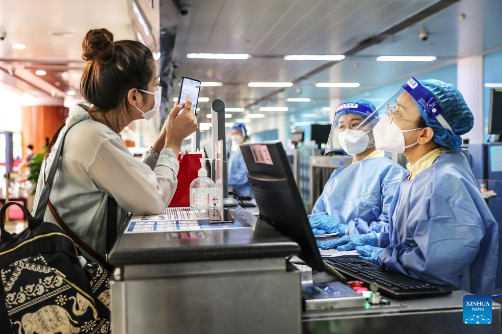 As of Saturday, Hainan Province registered 3,809 confirmed COVID-19 cases and 3,927 asymptomatic ones between Aug. 1 and 13, local authorities said at a press briefing on Sunday. Hainan has helped visitors stranded in the province return home. By 6 a.m. Sunday, 14,247 stranded visitors had left Sanya and the provincial capital Haikou in 92 flights. (Xinhua/Zhang Liyun)