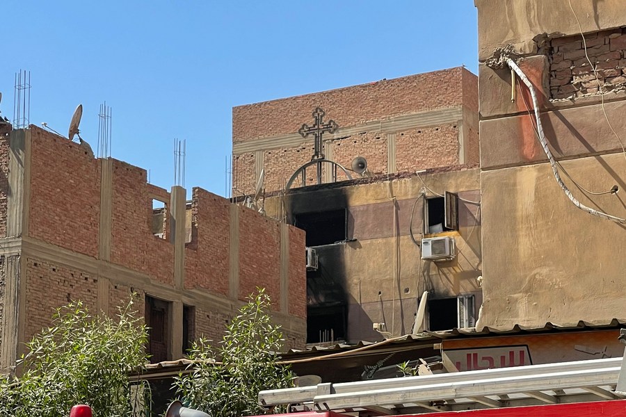 Photo taken on Aug. 14, 2022 shows the fire site at a Coptic church in Giza Province, Egypt. (Xinhua/Ahmed Gomaa)