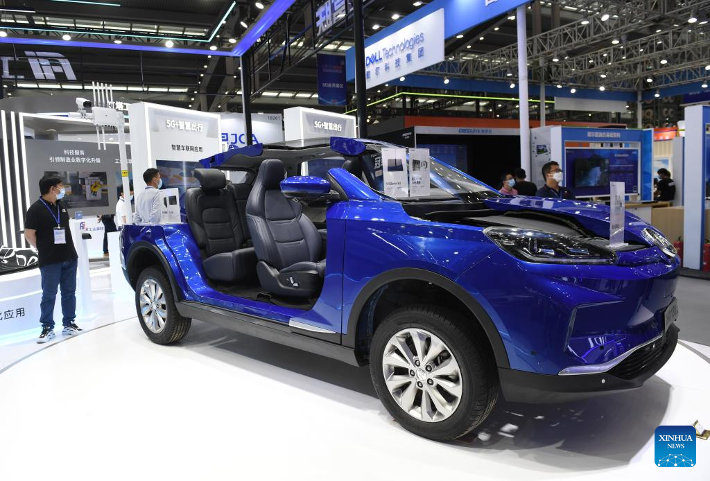 A visitor experiences an intelligent vehicle at the 10th China Information Technology Expo in Shenzhen, south China's Guangdong Province, Aug. 16, 2022. (Xinhua/Liang Xu)