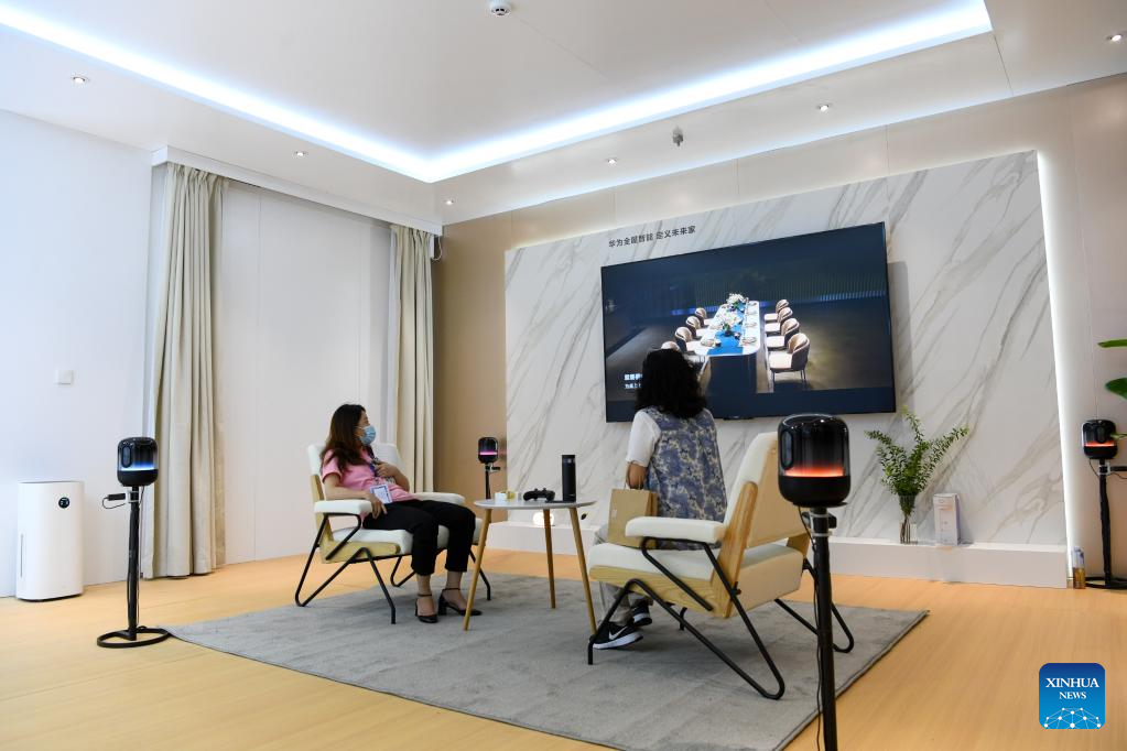 Visitors experience a smart live-streaming device at the 10th China Information Technology Expo in Shenzhen, south China's Guangdong Province, Aug. 16, 2022. (Xinhua/Liang Xu)