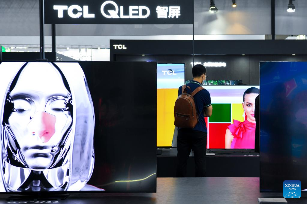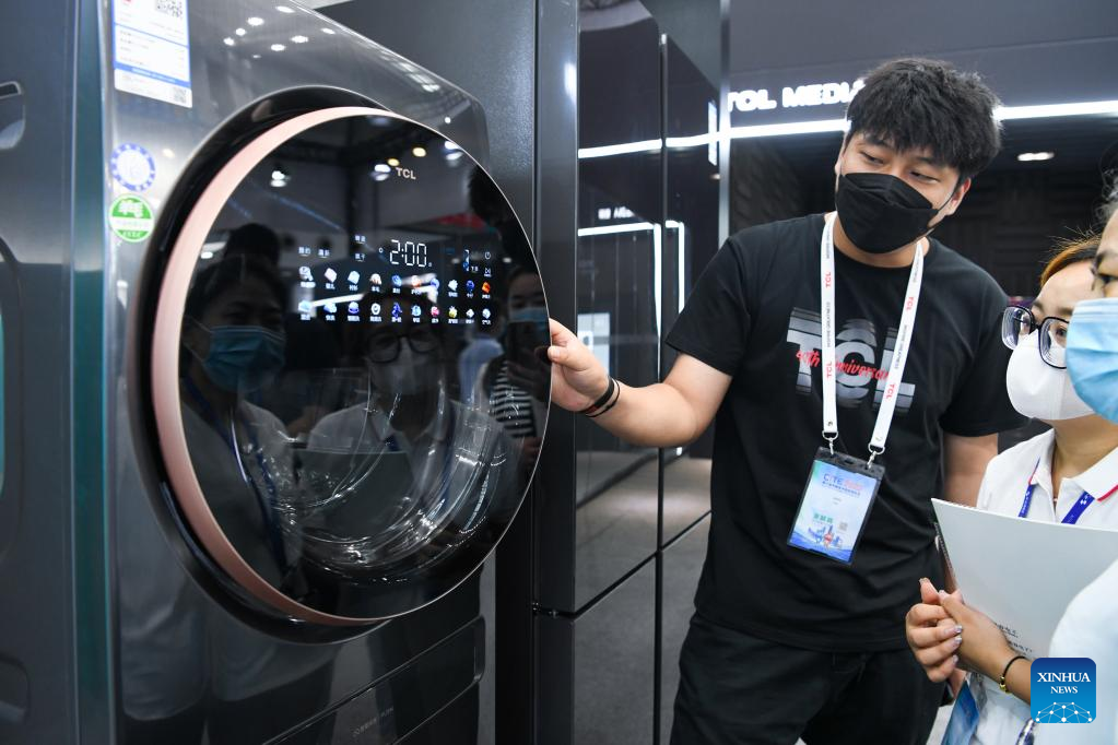 Visitors watch an intelligent washing machine at the 10th China Information Technology Expo in Shenzhen, south China's Guangdong Province, Aug. 17, 2022. (Xinhua/Liang Xu)