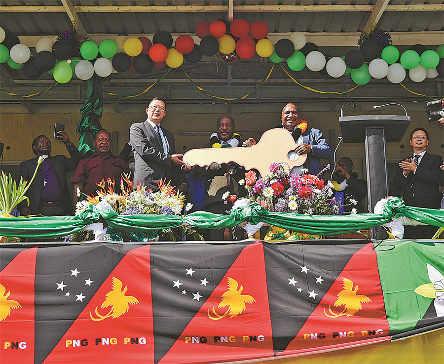 Zeng Fanhua, Chinese ambassador to Papua New Guinea, and Papua New Guinea's Prime Minister James Marape take part in the handover of a new hospital on June 20. XINHUA