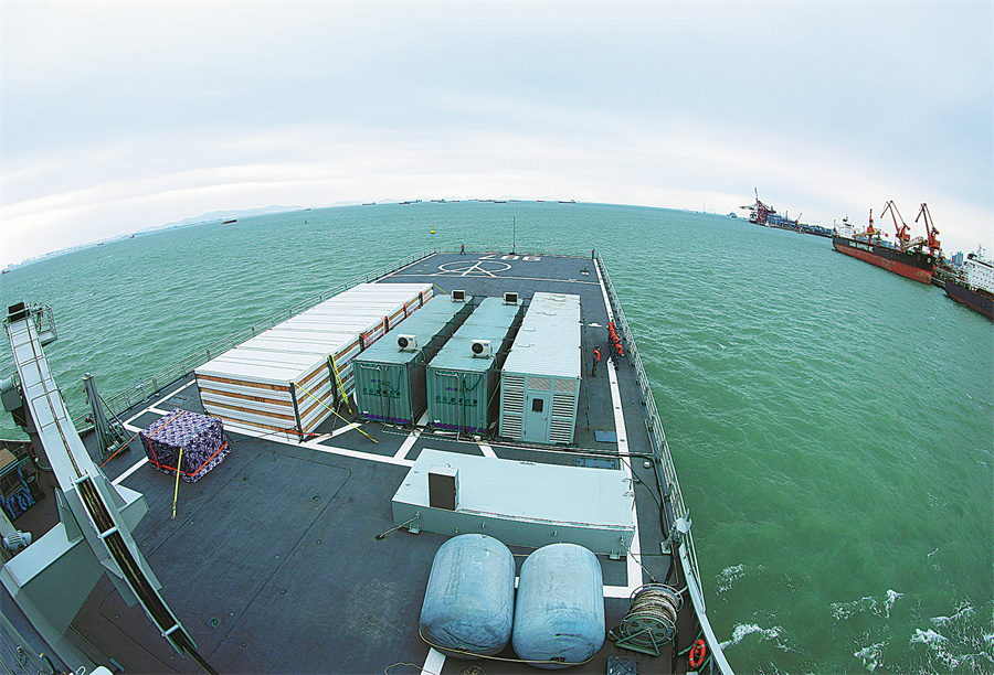 A Chinese naval vessel delivers relief supplies to Tonga on Jan 31. ZHOU YANCHENG/XINHUA