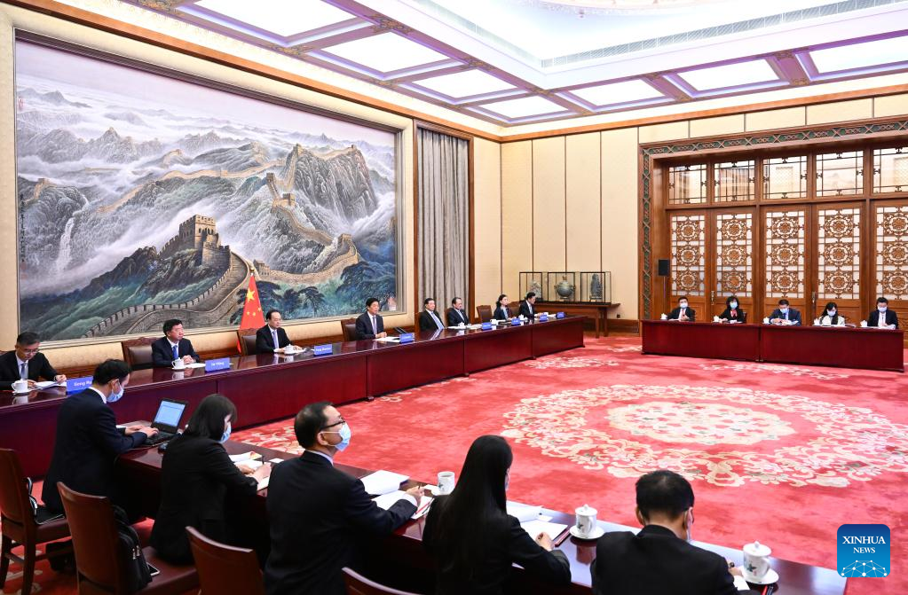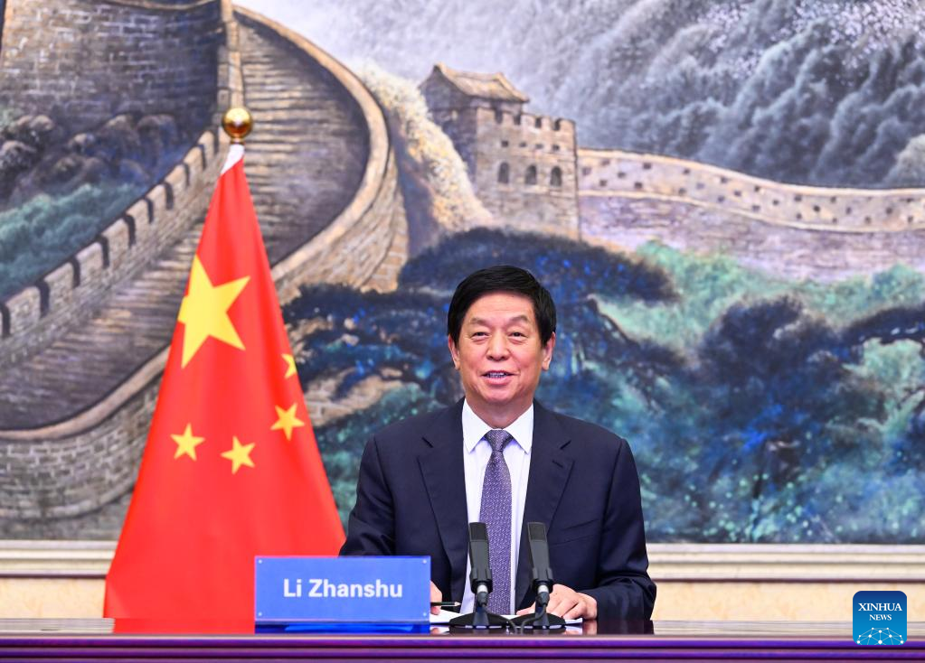 BEIJING, Aug. 17 (Xinhua) -- Li Zhanshu, chairman of the National People's Congress (NPC) Standing Committee, on Wednesday met with Tonga's Speaker of the Legislative Assembly, Lord Fakafanua, via video link.