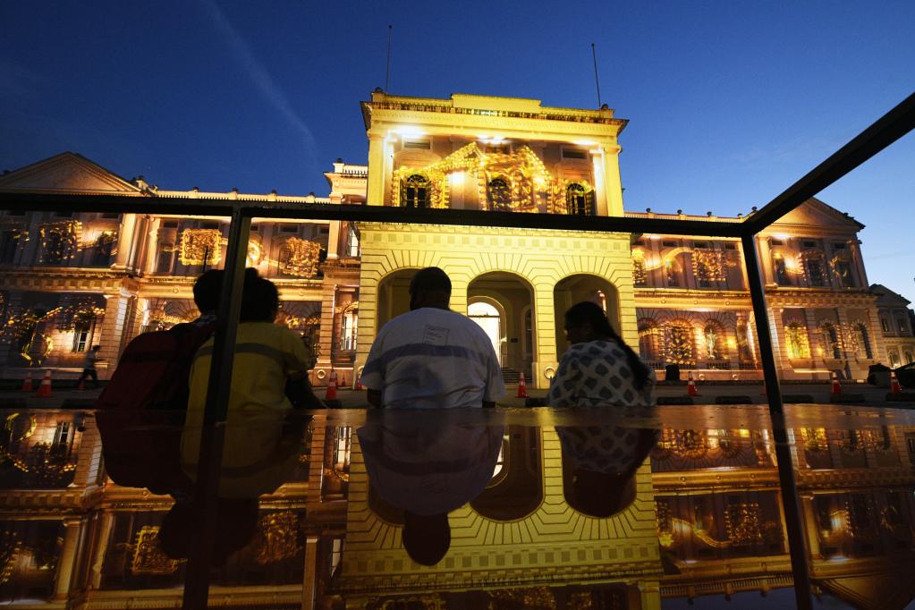 People view light installations during the media preview of the Singapore Night Festival in Singapore on Aug. 17, 2022. (Photo by Then Chih Wey/Xinhua)