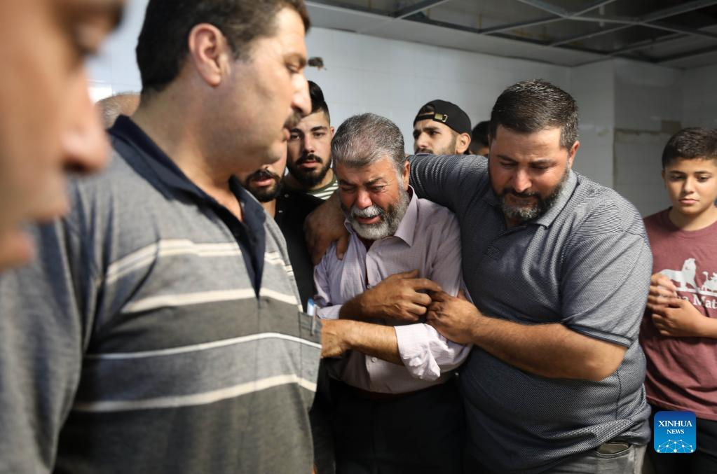 A relative of Palestinian Salah Sawafta mourns at a hospital in the West Bank city of Nablus, Aug. 19, 2022. Salah Sawafta, 58, died from critical injuries after being shot in the head by Israeli soldiers in the West Bank city of Tubas, the Palestinian health ministry said. (Photo by Ayman Nobani/Xinhua)