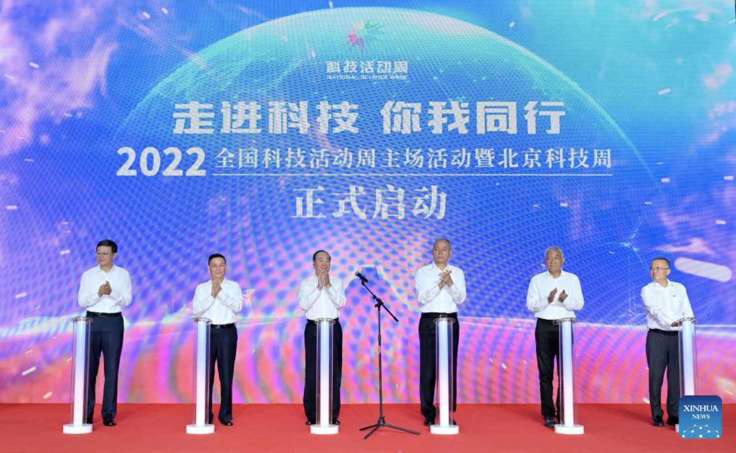 Huang Kunming, a member of the Political Bureau of the Communist Party of China (CPC) Central Committee and head of the Publicity Department of the CPC Central Committee, attends an event to launch the national science and technology (S&T) week activities in Beijing, capital of China, Aug. 20, 2022. (Xinhua/Yue Yuewei)
