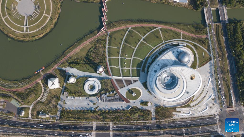 Aerial photo taken on Aug. 19, 2022 shows the Shanghai Astronomy Museum in Lingang new area of the China (Shanghai) Pilot Free Trade Zone in east China's Shanghai. Saturday marked the 3rd anniversary of the launching of Lingang new area. (Xinhua/Jin Liwang)