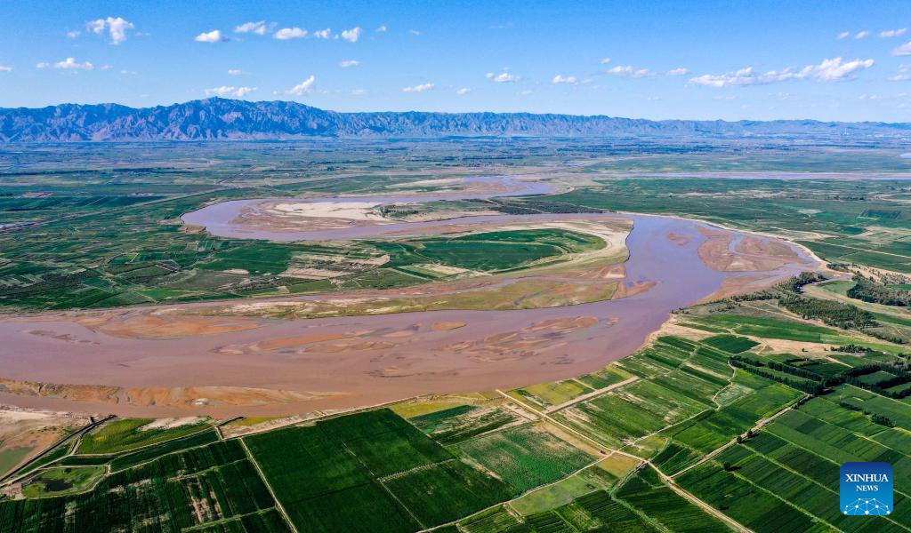 Aerial photo taken on Aug. 16, 2022 shows the Yellow River in Hanggin Banner in Erdos, north China's Inner Mongolia Autonomous Region. (Xinhua/Lian Zhen)