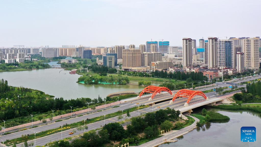 Aerial photo taken on Aug. 10, 2022 shows the cityscape of Lanzhou New Area in Lanzhou, northwest China's Gansu Province.
