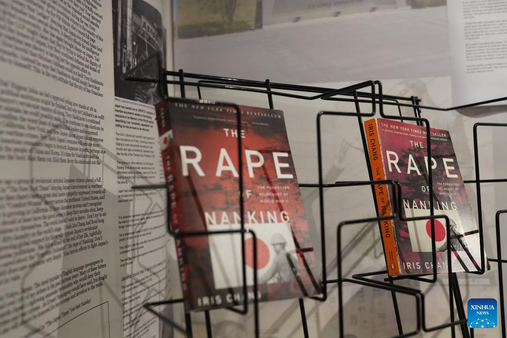 Two books of Iris Chang's "The Rape of Nanking: The Forgotten Holocaust of World War II" are displayed at a reading room of the San Francisco WWII Pacific War Memorial Hall in San Francisco, the United States, Aug. 20, 2022.