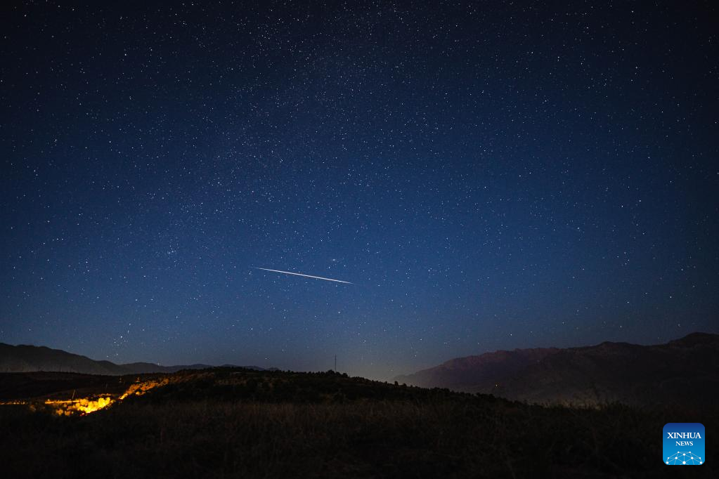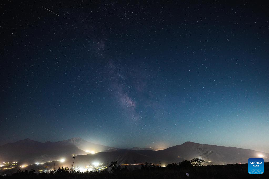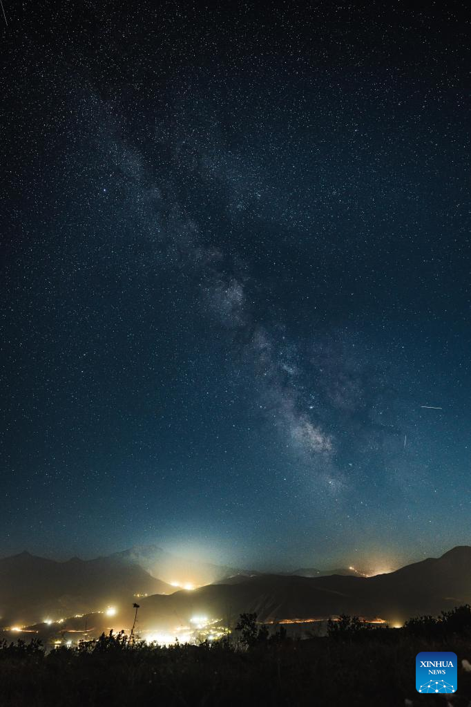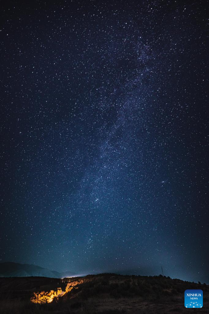 Photo taken on Aug. 21, 2022 shows the night sky above a mountainous area near Tashkent, Uzbekistan. (Photo by Georgiy Namazov/Xinhua)