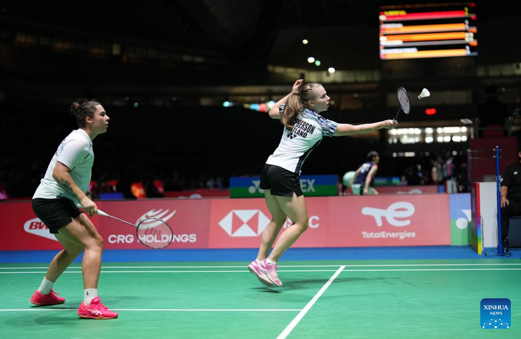Julie Macpherson/Ciara Torrance (L) of Scotland compete during the women's doubles second round match against Zhang Shuxian/Zheng Yu of China at the BWF World Championships 2022 in Tokyo, Japan, Aug. 24, 2022. (Xinhua/Zhang Xiaoyu)