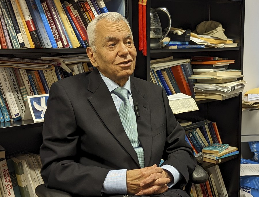 Photo taken on May 2, 2022 shows Khairy Tourk, professor of economics with the Stuart School of Business at the Illinois Institute of Technology in Chicago, receiving an interview with Xinhua in Chicago, the United States. (Photo by Zhang Yan/Xinhua)