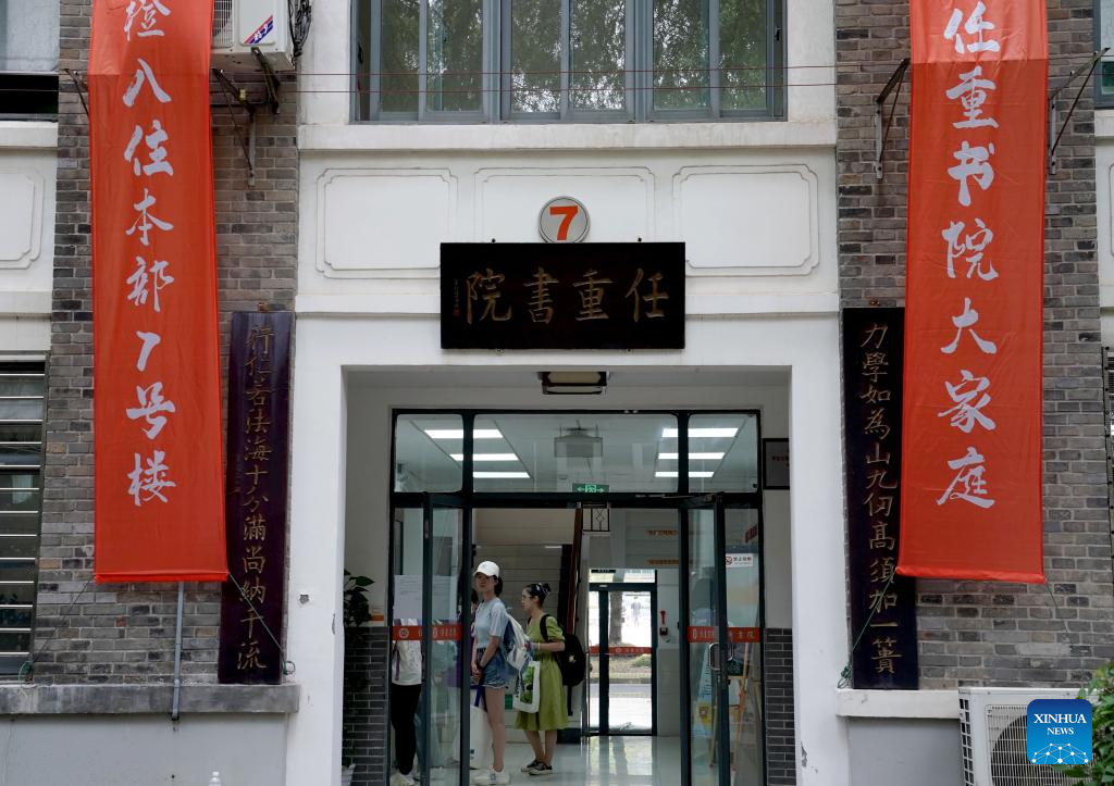 Freshmen register their information at a dormitory of Fudan University in east China's Shanghai, Aug. 28, 2022. The registration of freshmen of the university started on Saturday. (Xinhua/Liu Ying)